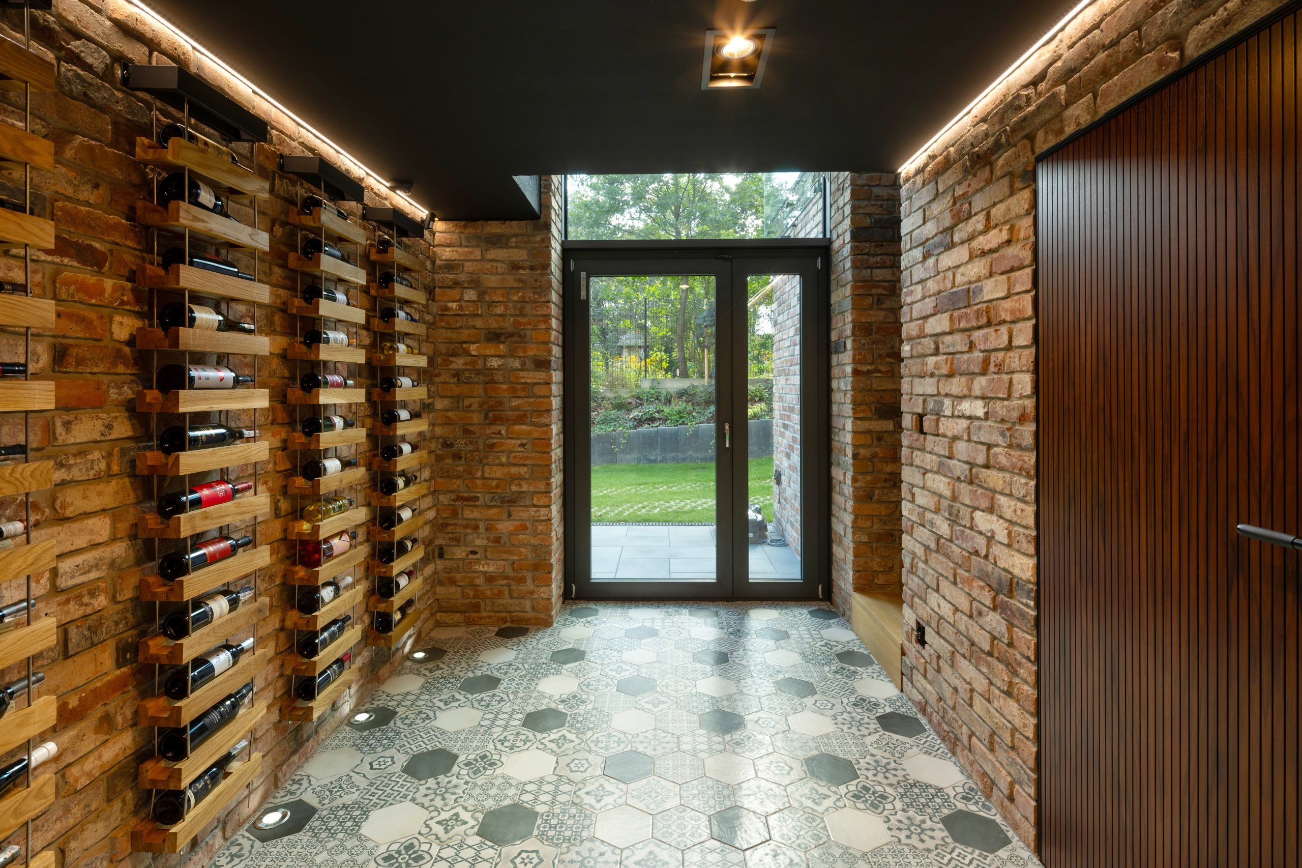 In questo scenario incantevole si inserisce una realizzazione in cui Wisniowski ha giocato un ruolo fondamentale, fornendo tutti gli infissi e i serramenti per una villa monofamiliare. Questa dimora, immersa nel verde di un bosco che la circonda, si presenta con un’eleganza discreta. Protetta da un alto muro di mattoni rossi su un lato, che richiama i colori della terra, la villa si distingue per i suoi volumi dinamici, capaci di catturare la luce in modo suggestivo.