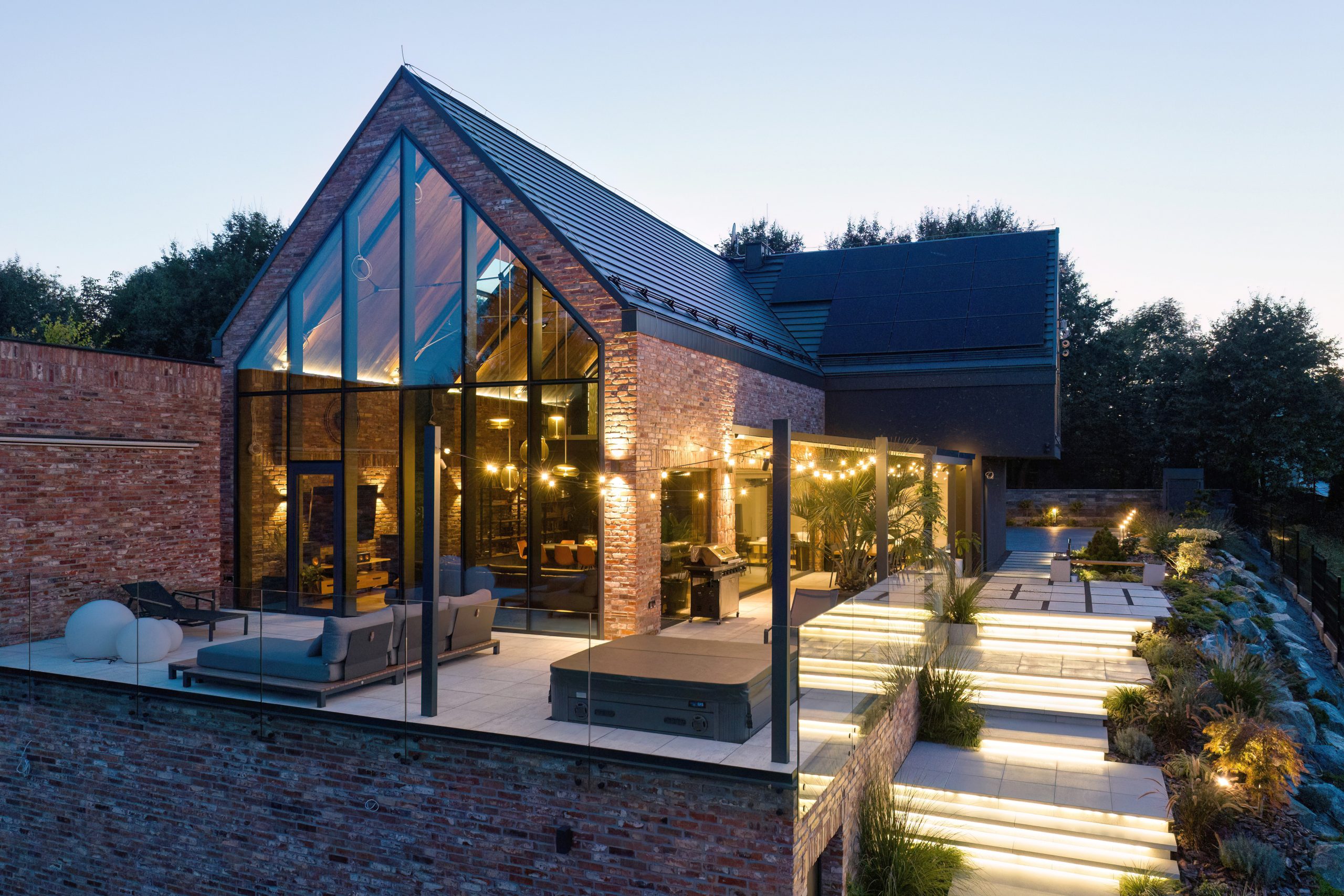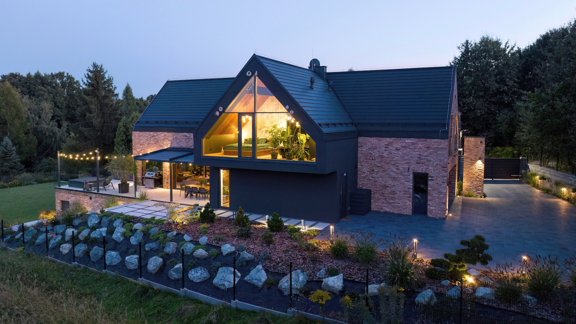 Infine, la recinzione AW.10.228 del sistema Home Inclusive, con il suo design solido e contemporaneo, offre privacy e protezione, integrandosi perfettamente nell’architettura complessiva della villa. Completa il quadro il cancello automatico e il palo MultiBox, che uniscono funzionalità e stile in un’unica soluzione.