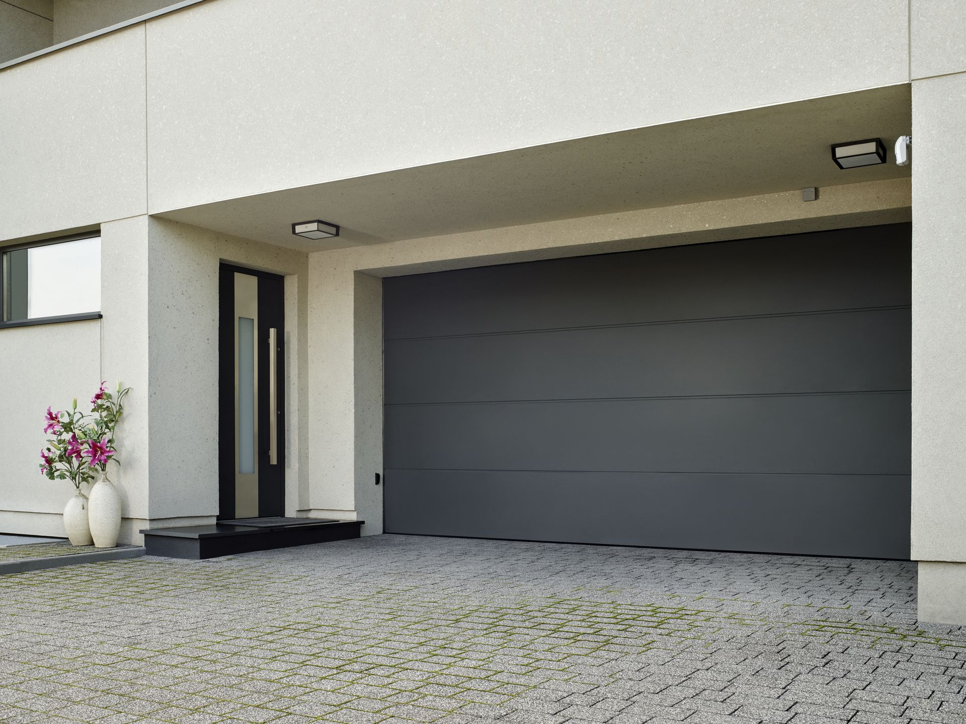La parte antistante dell’edificio si completa il portone da garage sezionale della linea Prime e con la porta d’ingresso Creo. Il design e l’aspetto d’insieme di questa proprietà è armonico grazie alla ampia possibilità di personalizzazione che Wiśniowski garantisce su tutti i prodotti delle proprie linee di produzione.