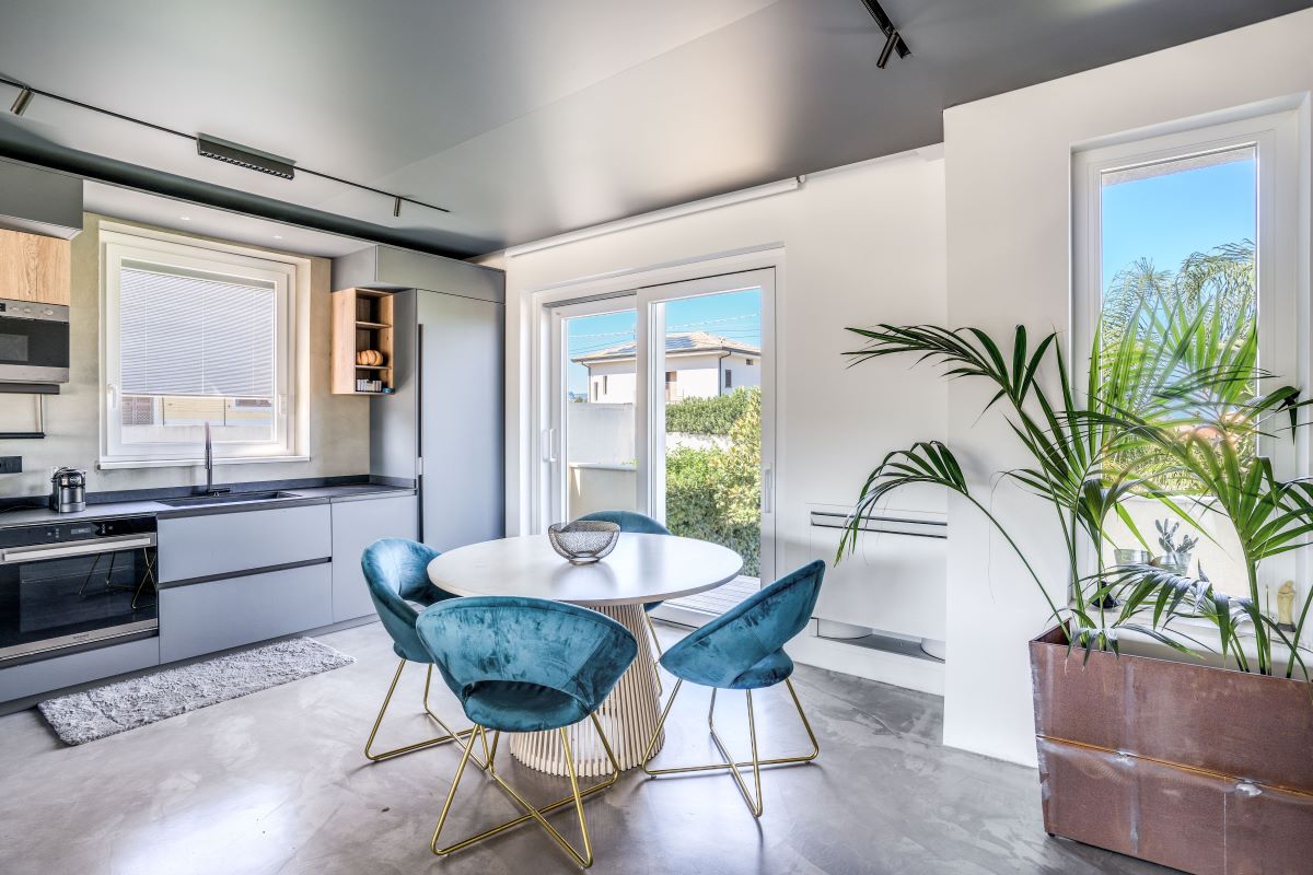 Gli interni hanno subito una ristrutturazione completa, includendo una migliore divisione degli spazi, con particolare attenzione alla zona giorno, divenuta un moderno open space perfe o per godere della terrazza panoramica grazie agli ampi scorrevoli HST di WnD.
