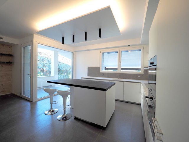 Interni essenziali e materiali ricercati si uniscono a sistemi impiantistici tecnologici che consentono la gestione domotica di ogni elemento della casa: illuminazione, climatizzazione, sistemi antintrusione e riscaldamento dell’acqua sanitaria.