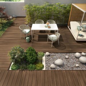 La naturalezza e il realismo delle venature e delle tonalità, la qualità degli effetti di superficie e la precisione degli incastri assicurano una resa estetica di alto profilo, pensata per chi vuole portare tutto il calore del legno anche negli spazi esterni.