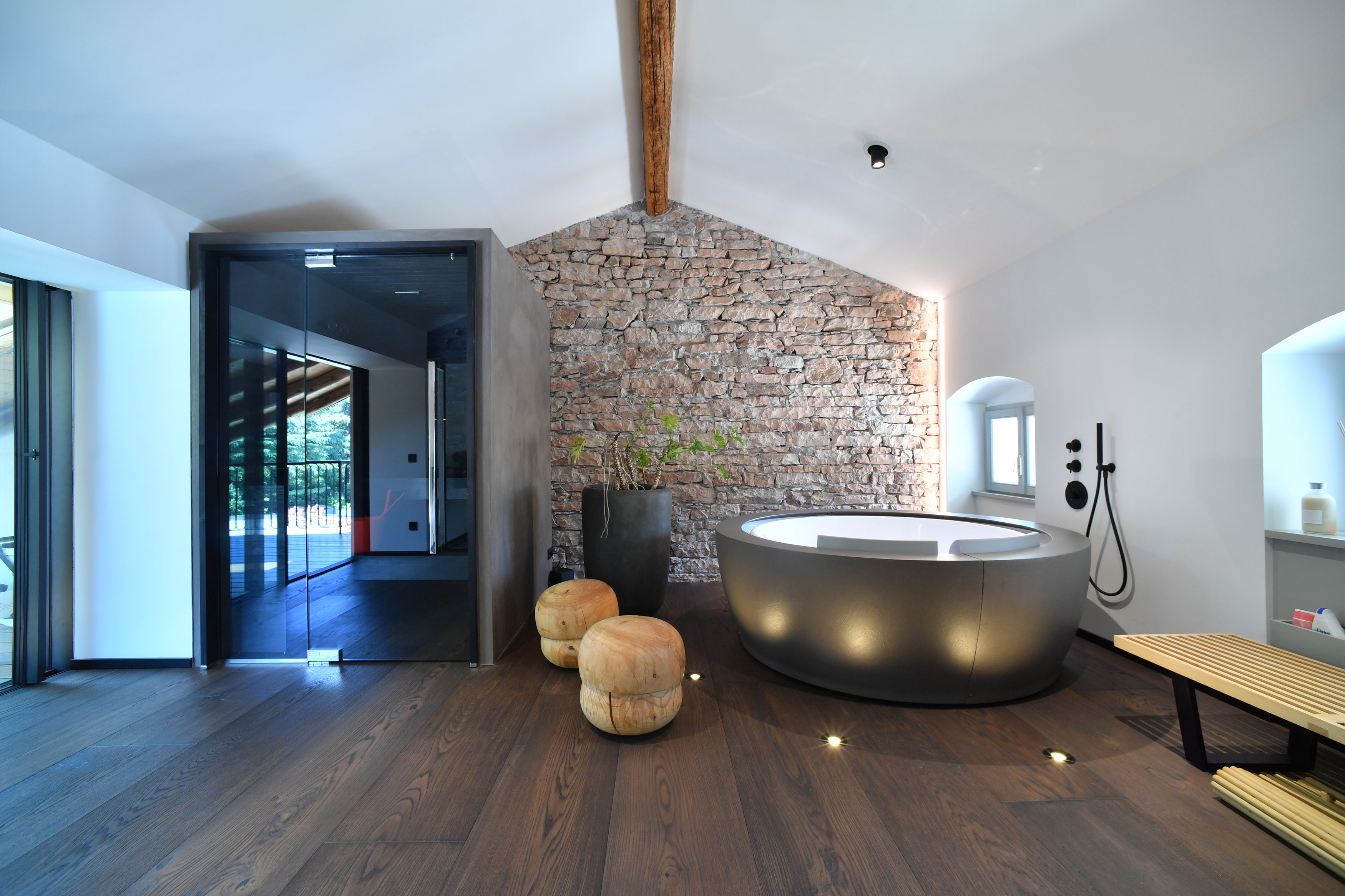 A fare la differenza per un pavimento è la scelta del giusto modello. Per il bagno è meglio optare per un parquet prefinito e scegliere una posa incollata con sigillatura del perimetro. Tra le essenze più indicate troviamo doussié, iroko e teak per la loro stabilità a contatto con l’acqua, ma anche il rovere. La finitura verniciata deve proteggere la superficie dagli urti e tutelare il pavimento dai liquidi e dalle macchie.