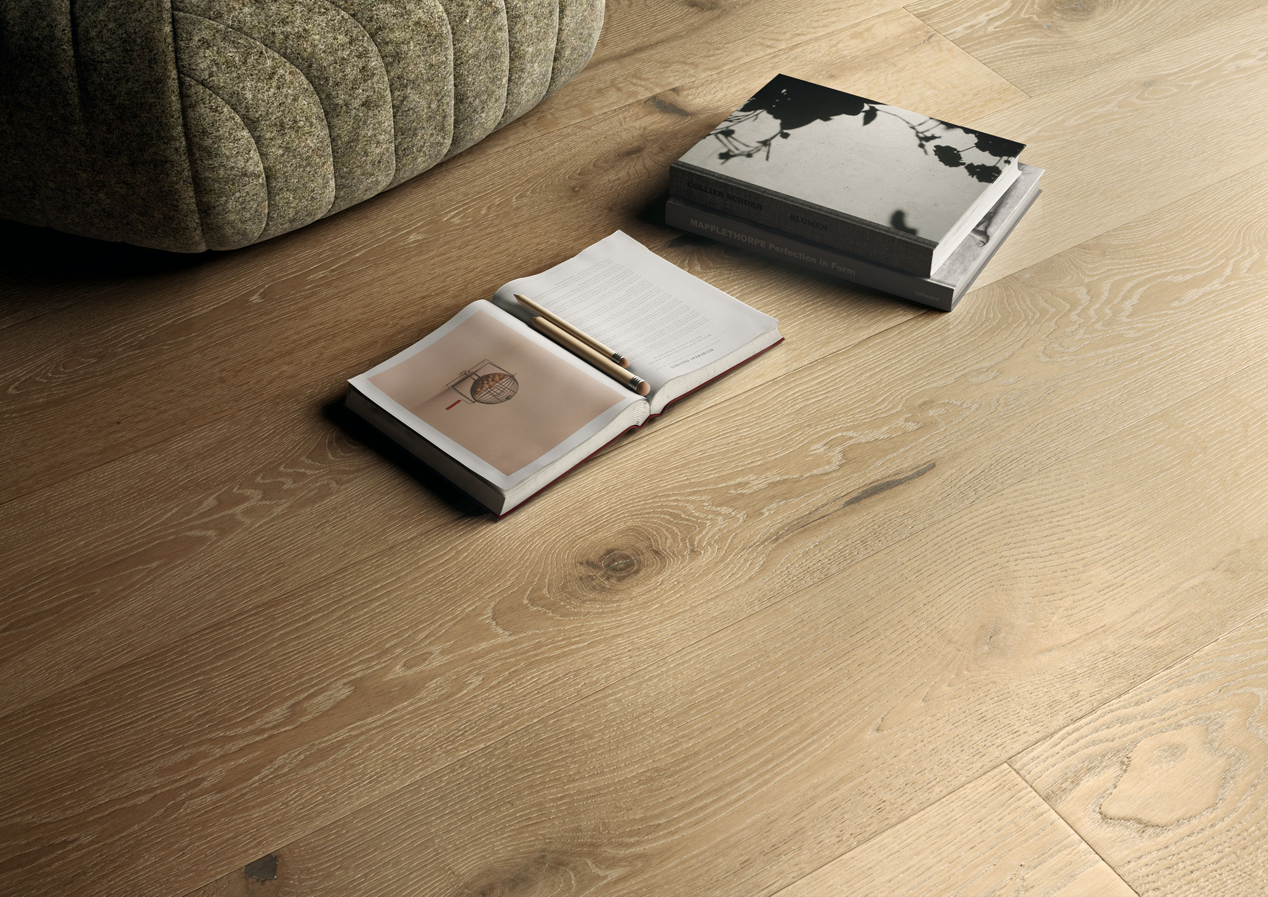 L’intera collezione è formata da tavole di grandi dimensioni (1800/1900×189/190×14 mm) con superficie spazzolata, bisellata sui quattro lati e rifinita con vernice opaca completamente atossica e sicura. Per la realizzazione di alcune proposte cromatiche, il legno è stato inoltre sottoposto a un trattamento fumé, che conferisce alle tavole un colore più bruno consentendo di ottenere tonalità calde e avvolgenti. Apprezzato in particolar modo per la resistenza e la versatilità, il Rovere Europeo è una delle specie legnose più pregiate per la produzione di pavimenti. Woodco ne esalta la naturalità attraverso finiture ecologiche che non coprono la bellezza intrinseca dell’essenza, ma la arricchiscono con sfumature morbide e delicate. Il risultato è una collezione di parquet materici e autentici che trasformano la potenza nella natura in una vera esperienza sensoriale.