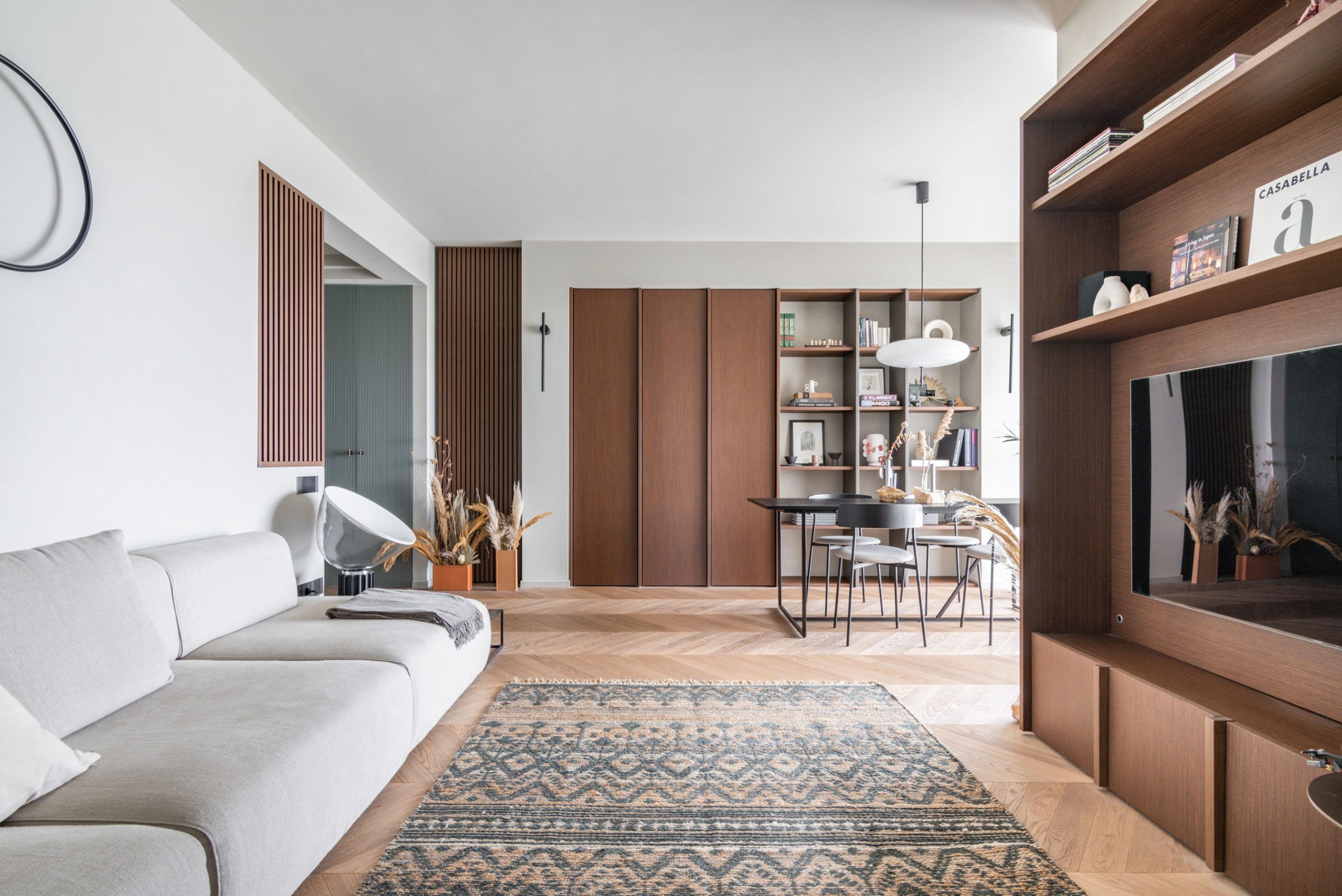 La spina Woodco ispira il progetto di rinnovamento dell’appartamento milanese