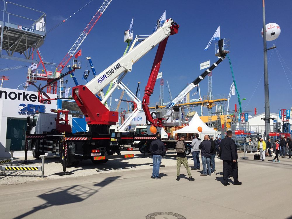 B-Lift 390 High Range. Questa piattaforma, anch’essa presente nello stand Cte al Bauma, è stata acquistata lo scorso ottobre dal dealer tedesco Hematec Arbeitsbühnen gmbh, recentemente impegnata in un tour dimostrativo in area tedesca. La piattaforma ha una portata maggiorata di 600 kg alla massima altezza di lavoro di 39 m, importante upgrade introdotto lo scorso anno su tutta la gamma Cte B-Lift High Range.