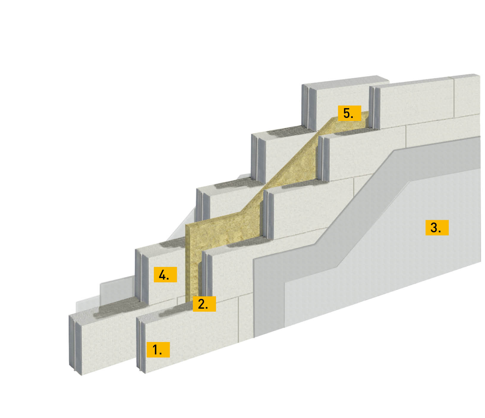 Il sistema acustico Ytong prevede il rispetto di alcuni dettagli costruttivi come la sigillatura dei giunti perimetrali con materiali elastici e il taglio degli intonaci, al fine di svincolare il divisorio acustico degli elementi costruttivi attigui e ottenere l’isolamento voluto. L’abbinamento del blocco acustico Ytong Y-Acu ad alta densità con Ytong Y-Pro di minore spessore, ha permesso di arrivare, in laboratorio, a un valore di potere fonoisolante Rw di 65 dB, con uno spessore di circa 26 cm. Inoltre, l’uso del blocco Y-Acu ad alta densità, unito al blocco classico Ytong Y-Pro, permette l’ulteriore vantaggio di evitare l’intonaco interno tra le murature.