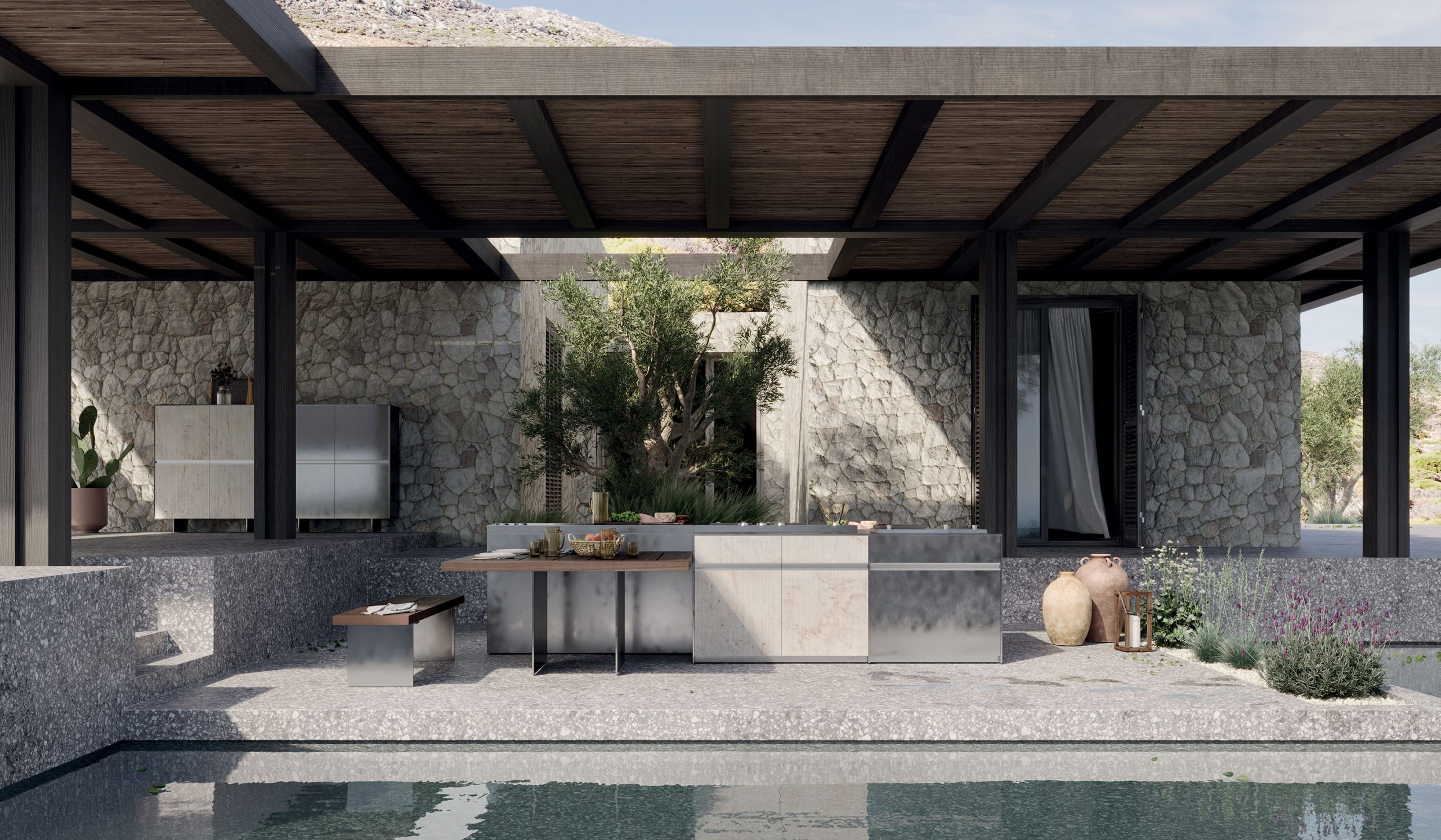 La prima cucina outdoor di Zampieri è ispirata al tema architettonico della loggia e risponde alle nuove esigenze del vivere attuale e alla voglia di trascorrere sempre più tempo all’aria aperta.