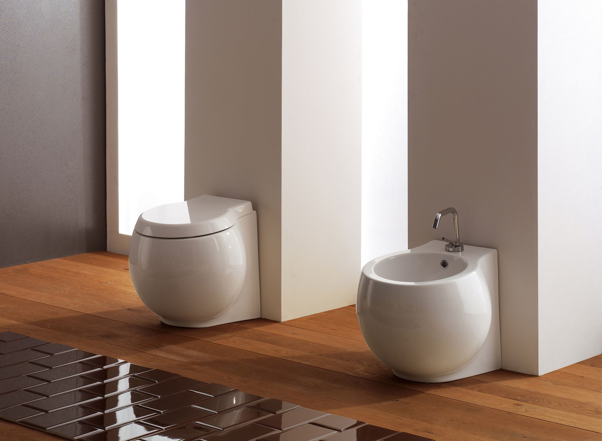- Planet – Sanitari in ceramica sospesi e da terra. Misure: Planet wc sospeso e wc a terra cm 50×45.