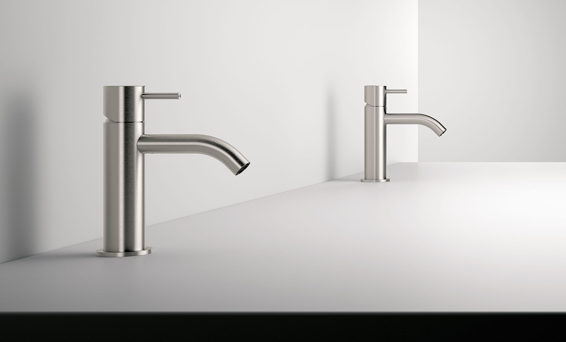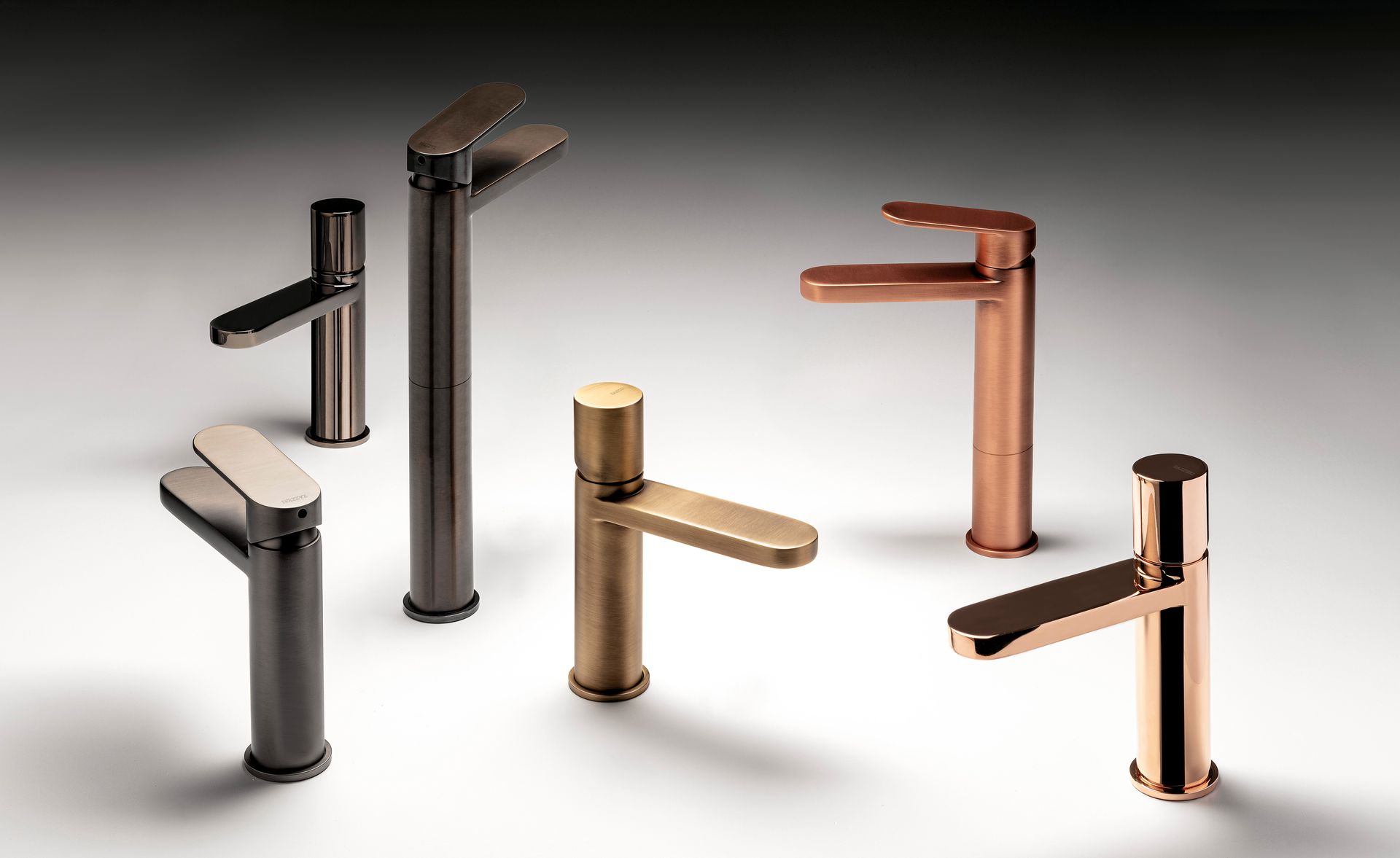 - Z316 – Design Arch. Roberto Innocenti – Collezione realizzata interamente in acciaio e disponibile in 7 diverse finiture (Acciaio satinato, Antracite, Bronzorame, Carbon, Rame, Cognac e Orobianco) con leve disponibili, oltre all’acciaio, in 12 colorazioni diverse. Miscelatore lavabo da piano disponibile in diverse altezze: mm L110xH60/80; mm L160xH240/280/440