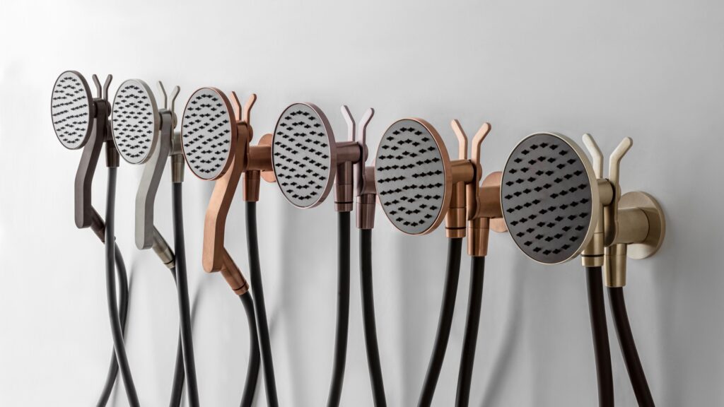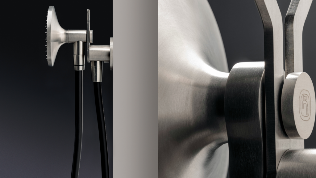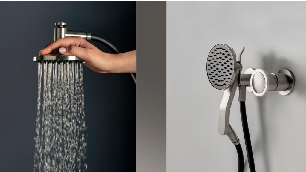 Il materiale scelto è l’acciaio inossidabile AISI 316L, qui utilizzato sfidando le difficoltà intrinseche della sua lavorazione in quanto viene applicato a forme morbide e sinuose, senza rinunciare al rigore estetico. Per quanto riguarda il colore, entrambe le doccette di Zazzeri sono bicolori e presentano per il lato ugelli una cover in finitura Carbon, mentre per il resto della doccetta si può scegliere tra sette varianti (Acciaio spazzolato, Carbon, Antracite, Bronzorame, Rame, Cognac e Orobianco).
